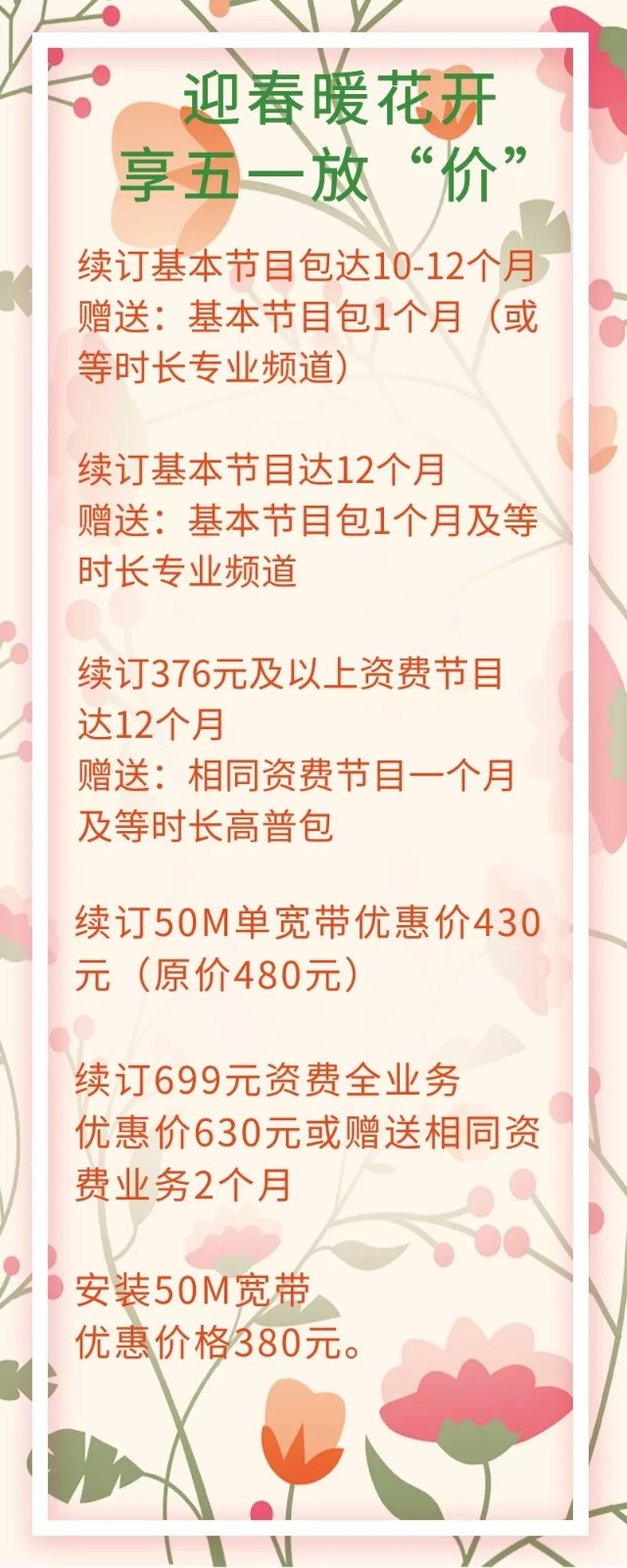 忻州广电“春风十里 不如回家看你”活动拉开序幕。精彩内容无卡顿,百兆宽带更实用。活动时间:4月11日-5月31日。