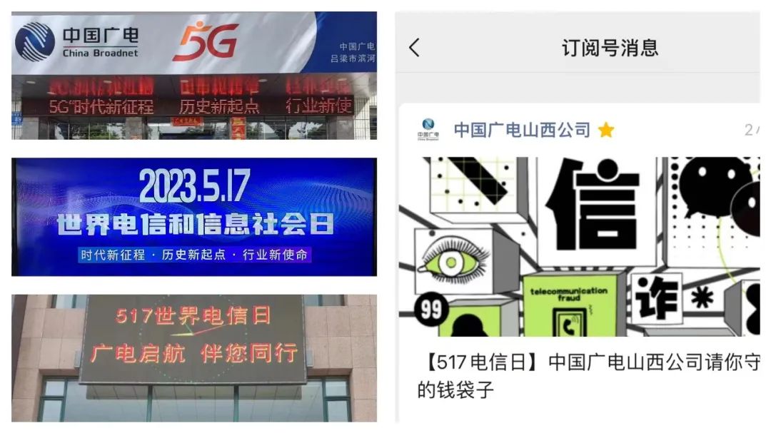 中国广电山西公司通过微信公众号、视频号、机顶盒开机画面、各地营销现场、营业厅、LED大屏、朋友圈等多种传播渠道进行517世界电信日主题宣传,营造了浓厚的517电信日宣传氛围。其中,公司公众号在517当天推出专项宣传,转发量达到了1万余次,点赞量达到了5万余个,整体宣传活动收到良好效果。此次主题宣传活动将持续三天,有效延伸中国广电的品牌宣传时间,提升中国广电在山西市场品宣力度。
