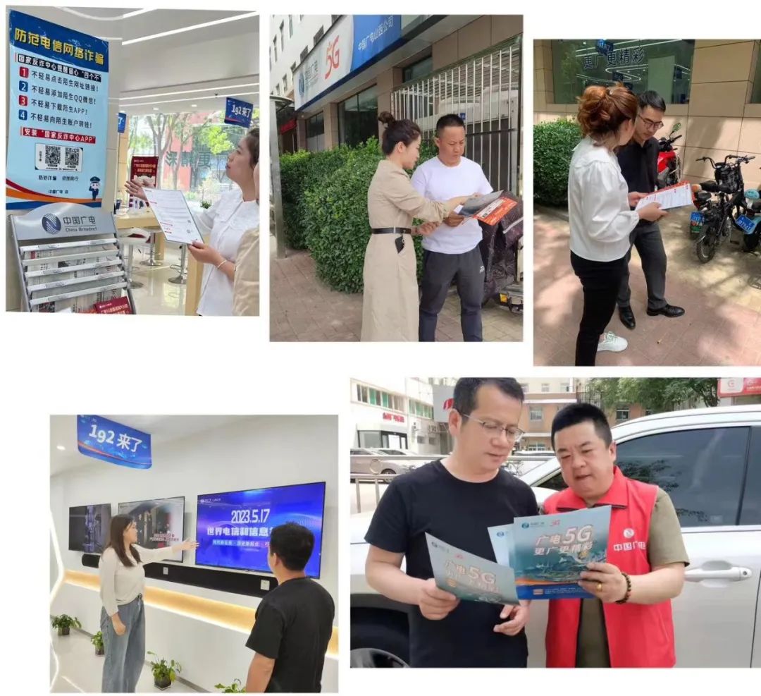 中国广电山西公司直属营业厅营业员们走上街头走近用户,宣传推广广电5G 192业务,让更多的用户了解广电业务,使用广电号卡,促进广电号卡活跃度。同时,通过在营业厅摆放谨防电信诈骗易拉宝、营业厅大屏播放新型电信诈骗盘点等视频短片、向用户宣贯“预防电信诈骗小窍门”等防范电信诈骗知识等活动做好反诈宣传,不断提升用户电信诈骗防范意识,提高用户识骗防骗的能力,全力守护用户的“钱袋子”。