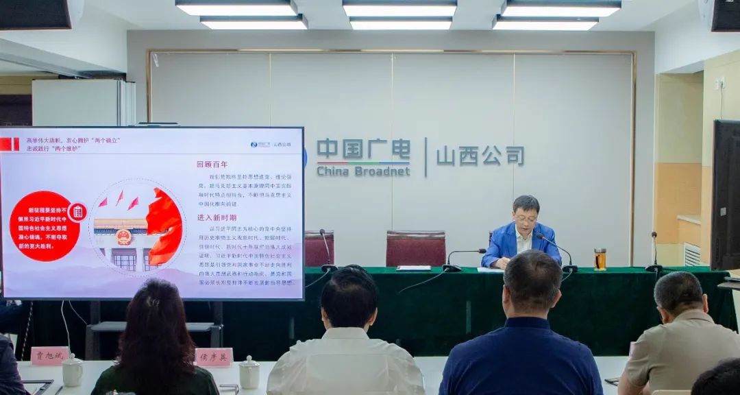 按照中央和省委关于深入开展学习贯彻习近平新时代中国特色社会主义思想主题教育部署要求,6月7日上午,中国广电山西网络有限公司党委书记、董事长赵文华以《紧抓机遇,奋发作为,为推进中国式现代化山西实践贡献广电力量》为题,为公司党员干部讲主题教育专题党课。公司党委副书记、副董事长、总经理侯彦英主持,公司党委班子全体成员、中层副职以上干部及党员代表参加党课。