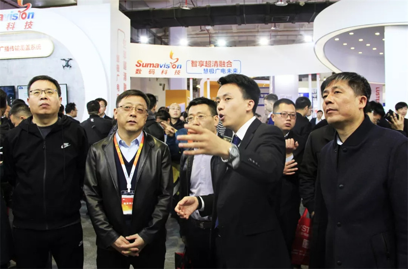 集团一行在展会现场观看了多家公司的现场演示,并与有关厂家进行了深入技术交流。在华为公司展台,认真听取了技术人员关于该公司在5G业务、融合媒体、县级融媒体等广电新业务方面的创新科技讲解。在数码科技展台,认真听取了技术人员关于超高清、媒体融合、5G等领域的前沿科技产品及解决方案,包括4K/8K相关内容、融媒能力平台、5G&AI、应急广播、国密安全、智能网关/终端、CDR等的介绍。